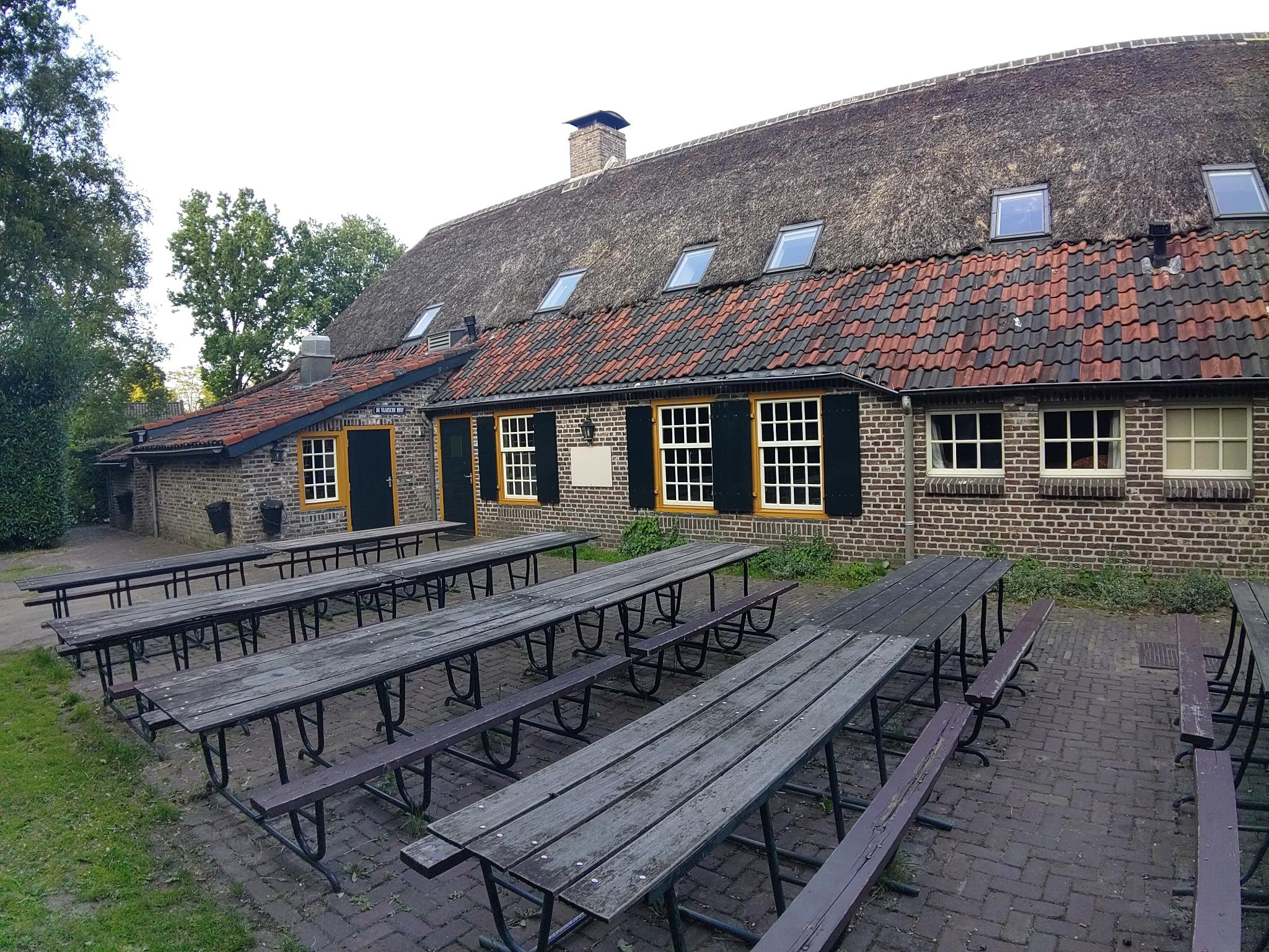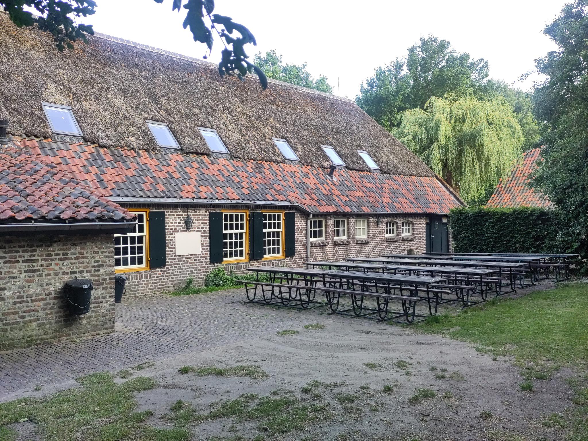 We are staying at De Vaarsche Hoef, one of the accommodations offered by De Hoof. It is a cozy converted thatched farmhouse with plenty of beds, a well-equipped kitchen and a proper bar. In addition we can use the sport hall for additional hacking space, activities, workshops, and talks. For outside activities or camping (see below) there is a big grass field outside the building that we can use.